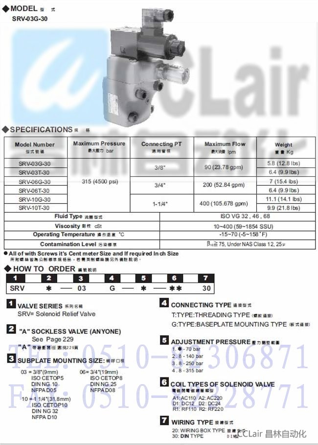 SRV-10G-30,SRV-10T-30,SRV-06T-30,电磁式溢流阀,